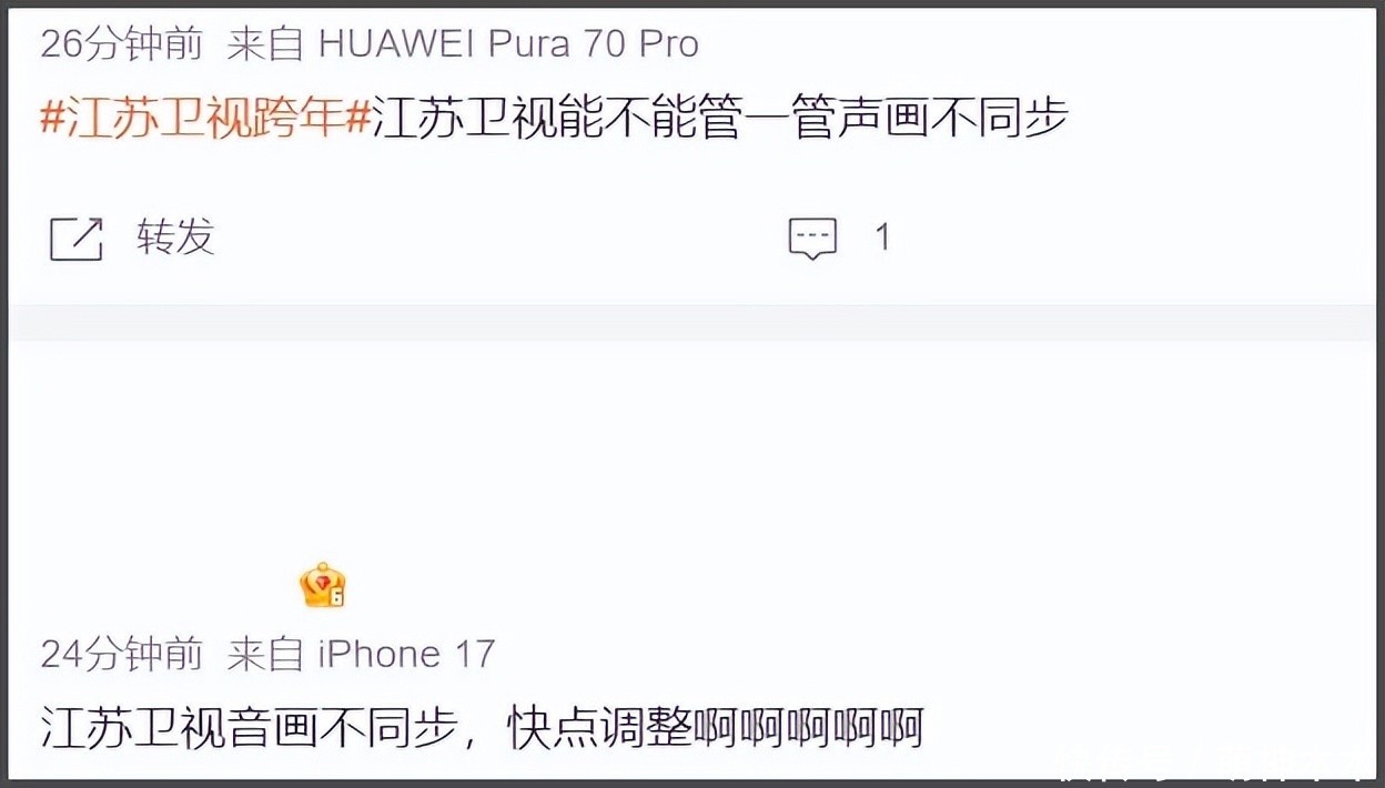 江苏卫视亦然真唱居多,然而音画不同步可苦了不雅众了,不知说念的还认为是对口型呢,一年就一次的跨年晚会还能出直播事故?