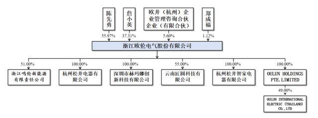 陈先勇、詹小英系鸳侣关系,终止本招股书签署之日,陈先勇胜利执有公司55.97%股份,通过欧井杭州盘曲执有公司2.75%的股份,且陈先勇为欧井杭州时时合伙东说念主并担任推论事务合伙东说念主,共计戒指公司61.57%的股份;詹小英胜利执有公司37.31%股份,陈先勇、詹小英胜利和盘曲共计戒指公司98.88%的股份,为公司的推行戒指东说念主。