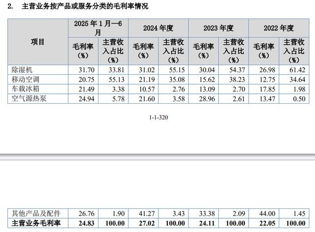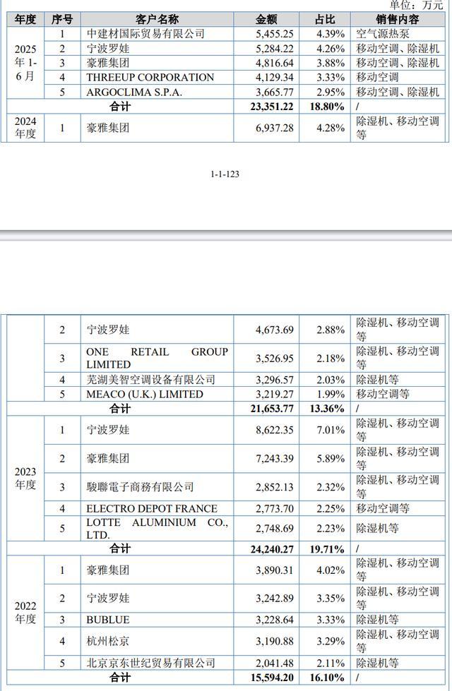 在第二轮问询函中,事迹增长合感性及执续性,凭证恳求文献及问询回答:(1)2023年至2025年1-6月,公司主营业务收入分别同比增长26.99%、31.76%、38.68%,主淌若移动空支援除湿机销售量执续增长,同期公司推出车载雪柜和空气源热泵两大新兴居品并竣事大幅增长。(2)2023年至2025年1-6月移动空调销售收入增幅分别为40.15%、20.90%、51.24%,移动空调行业出口量在2022年、2023年有所回落;公司除湿机销售收入增幅分别为12.40%、33.65%、4.27%,增长主要源于外售,欧洲阛阓加多较快,但2022年至2023年中国度用除湿机对欧洲阛阓出口量执续下跌,2025年1-6月,境内除湿机销量为530.8万台,同比下滑11.4%,2025年4月至8月,中国境外家用除湿机月销量同比下滑。(3)表现期内,公司除湿机居品全体平均销售单价呈下跌趋势,2022-2024年度,公司移动空调居品平均售价总体保执踏实,2025年1-6月出现下跌。(4)表现期公司前十大客户销售额存在较大波动,公司在部分主要OEM/ODM客户的供应份额下跌或客户采购需求下跌。(5)公司与ODM/OEM客户的协作均需资历一个从试样、小批量采购到浩繁量协作的导入过程,新品导入周期约10–12个月,老品导入周期约4-5个月。