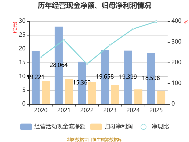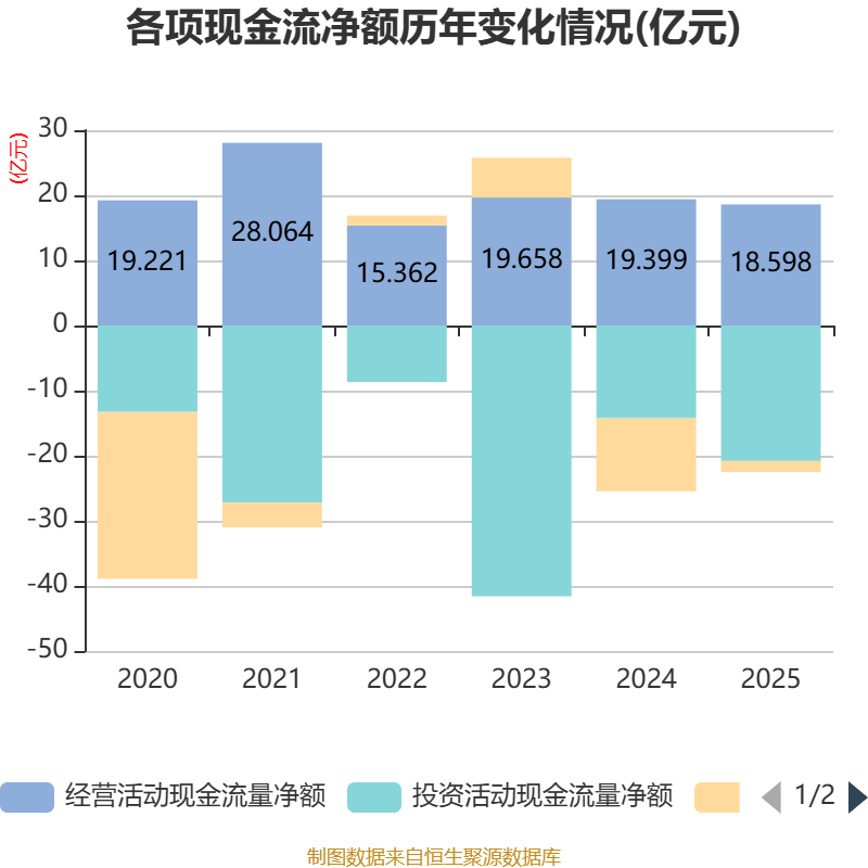 欺压2025年,公司打算手脚现款流净额为18.6亿元,同比下跌4.13%;筹资手脚现款流净额-1.71亿元,同比增多9.48亿元;投资手脚现款流净额-20.81亿元,上年同时为-14.26亿元。