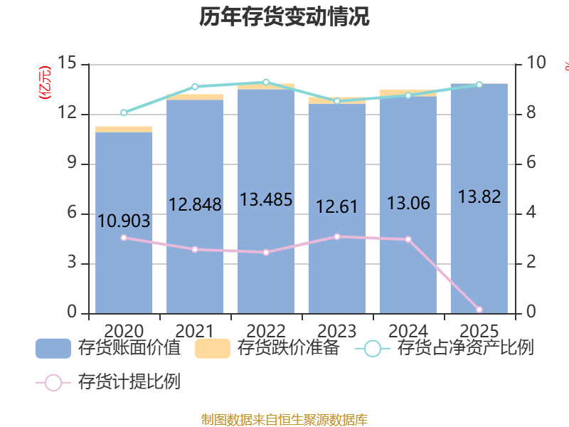 从存货变动来看,欺压2025年末,公司存货账面价值为13.82亿元,占净钞票的9.17%,较上年末增多7599.58万元。其中,存货跌价准备为199.84万元,计提比例为0.14%。