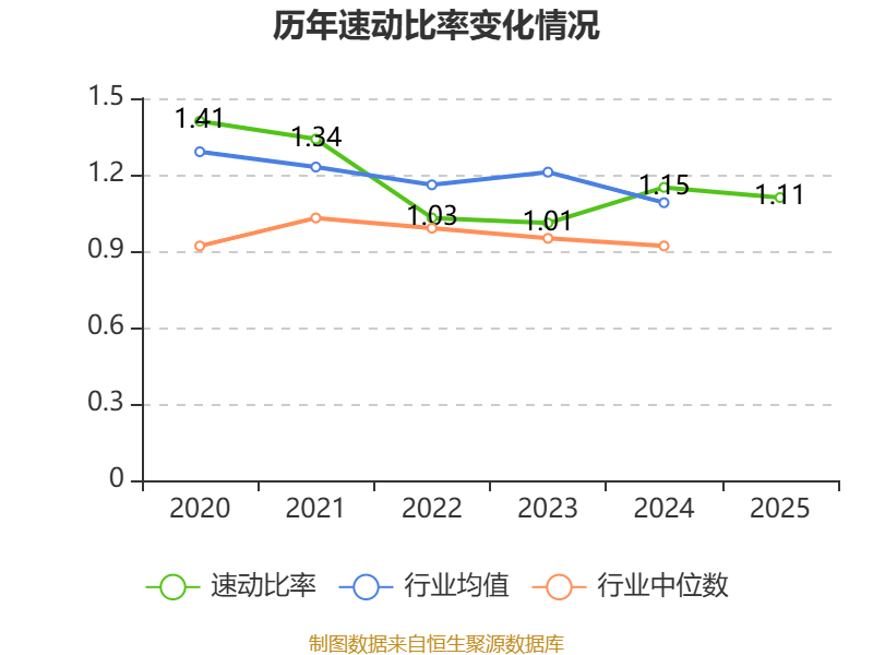 2025年,公司流动比率为1.23,速动比率为1.11。