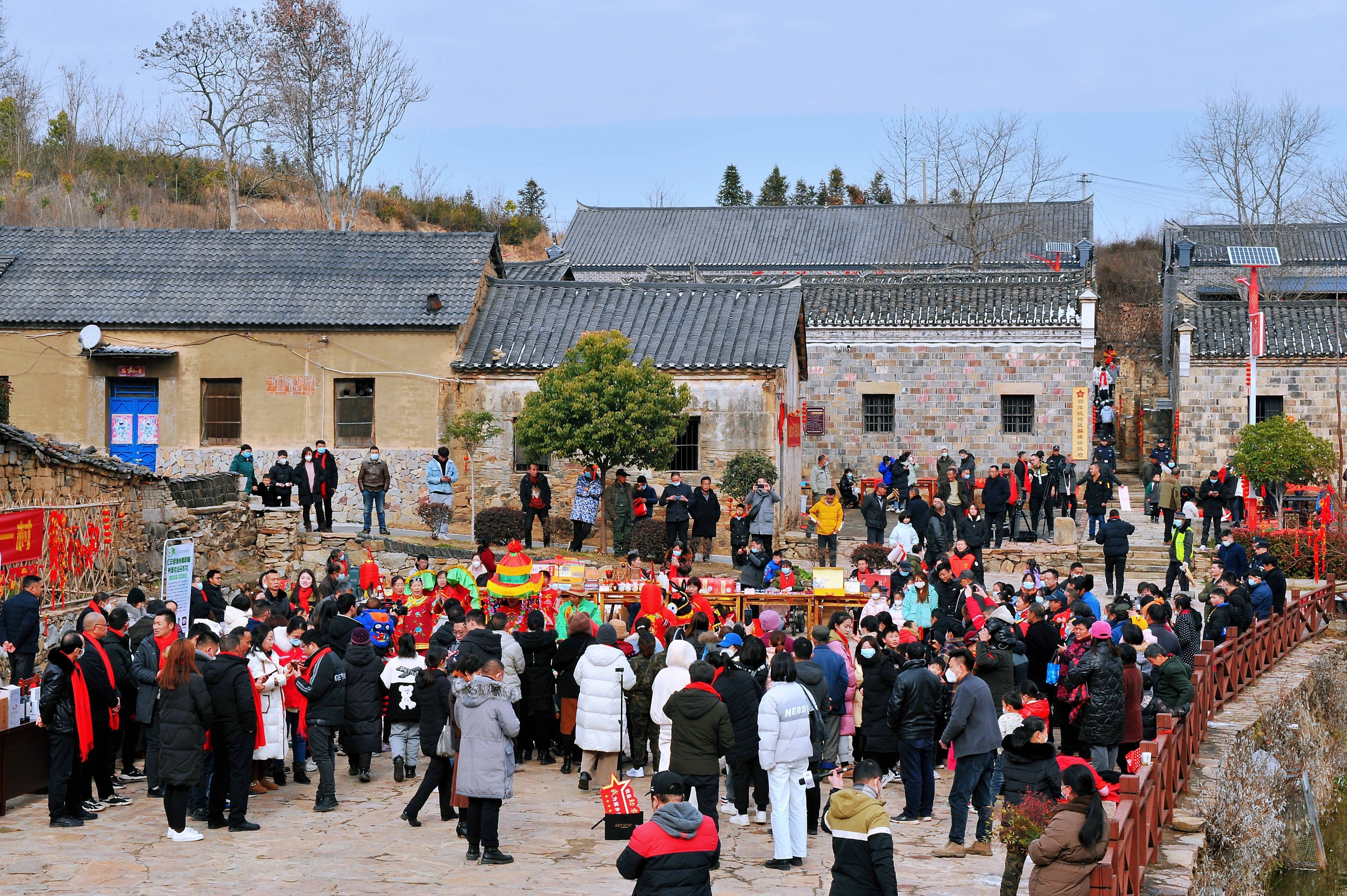 2023年1月16日,“红色八一村 玉兔闹新春”红安县学习宣传贯彻党的二十大精神文艺宣讲暨八一村“村晚”活动现场,游东说念主如织。(通信员刘斯锐供图)