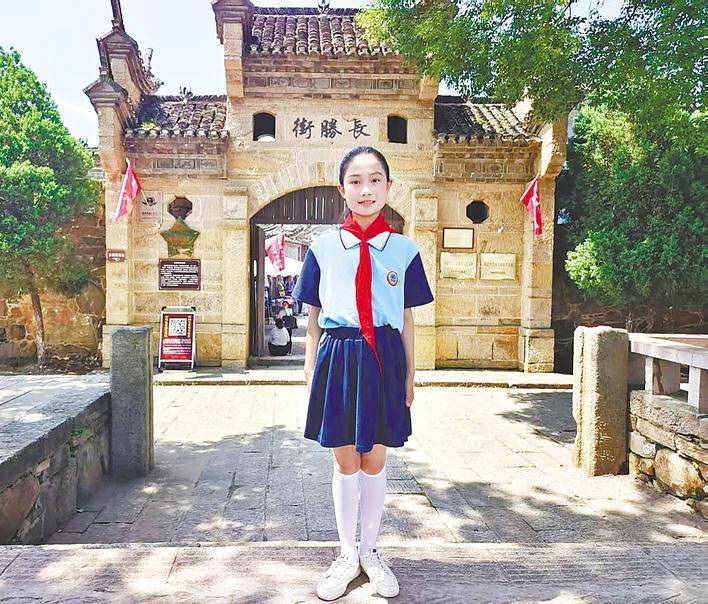 在七里坪长胜街,列宁小学学生方祎婷唱起《八月桂花随处开》。 (列宁小学供图)
